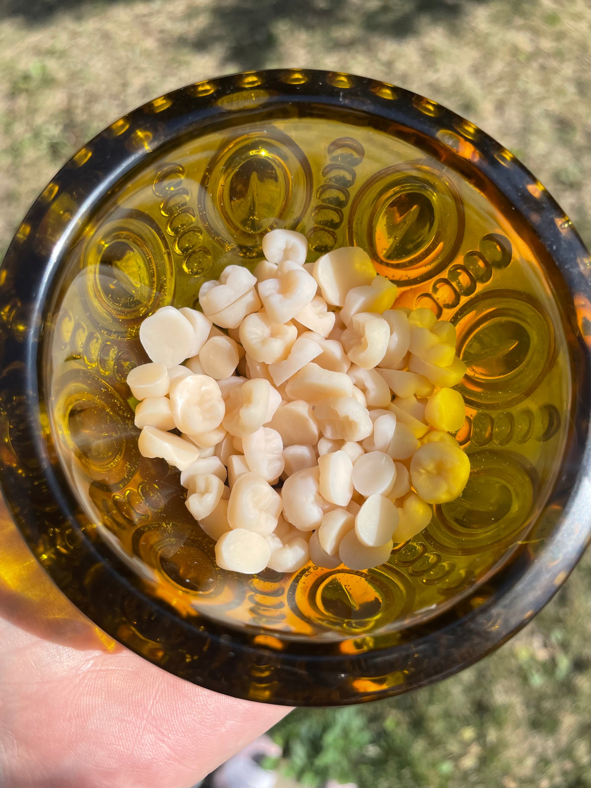 An assorted variety of clay teeth with accurate occlusal anatomy, perfect for whatever weird crafts you wanna get yourself into!