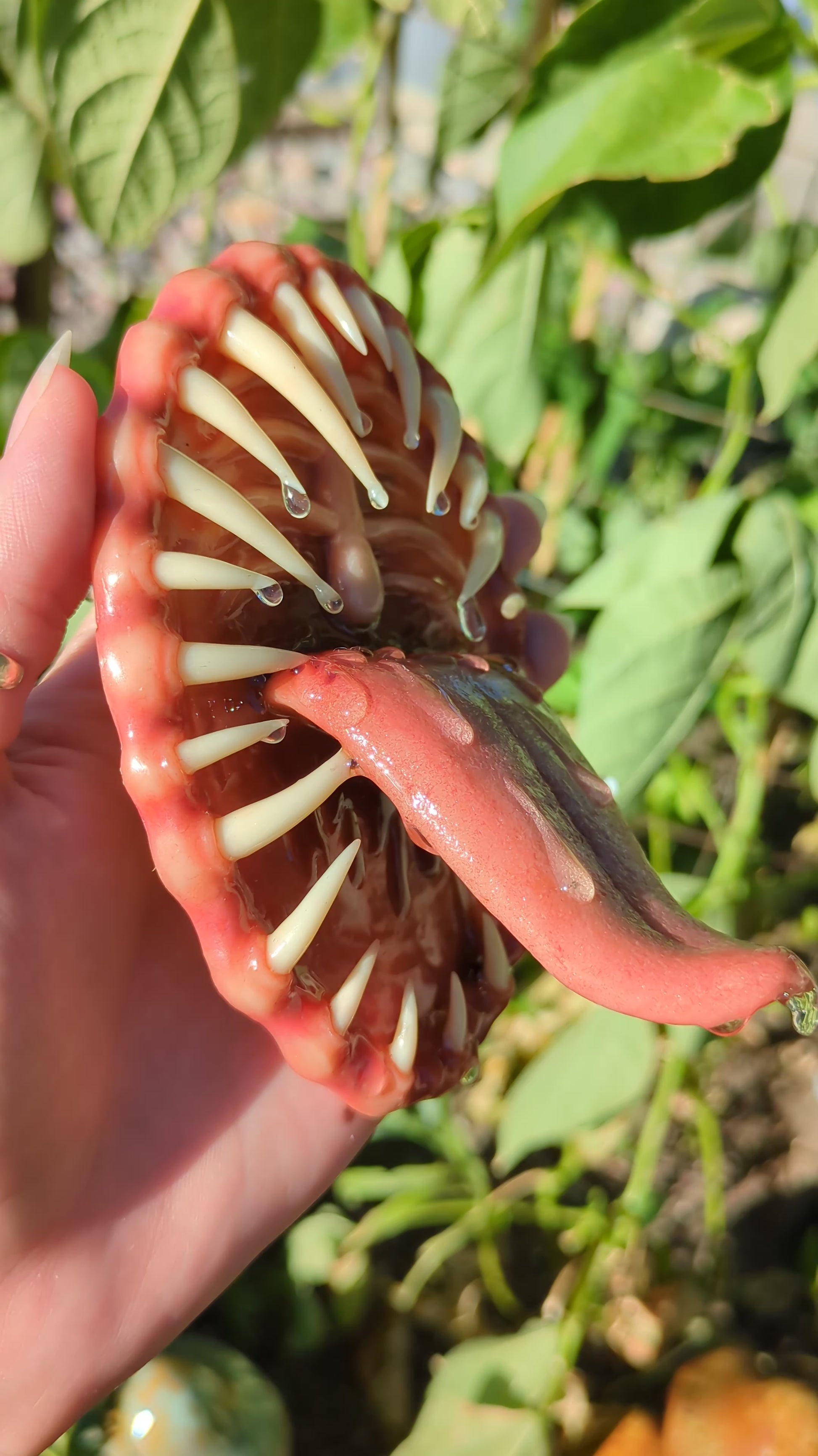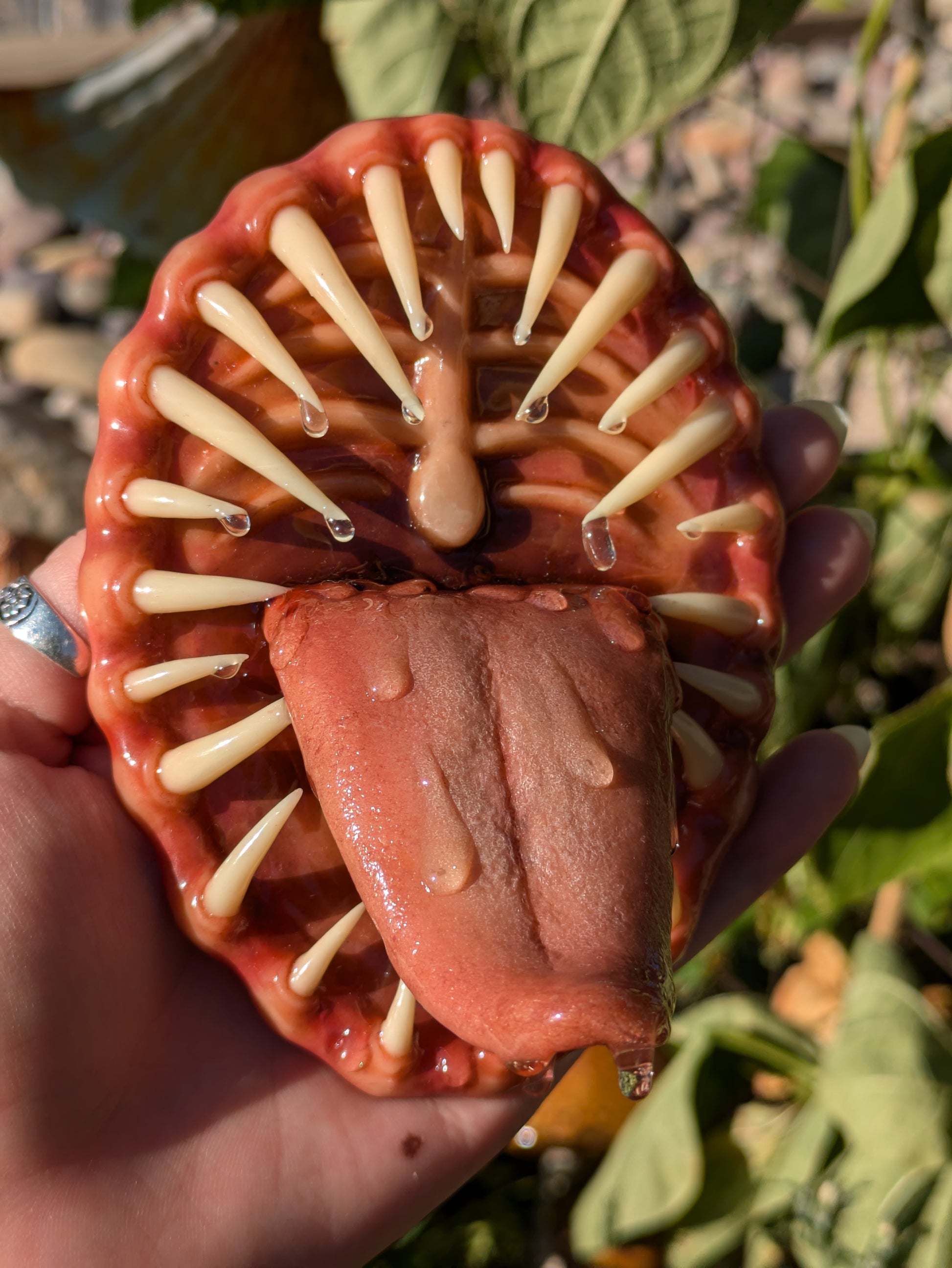 Sharp teeth, spit, and tongue. What more could you wantttt. This wall plaque measures about 4x3” roughly.